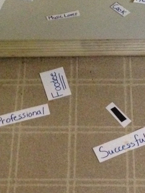It’s all up on the fridge, feeling a bit more complete. There are still a few words that have yet to be added to my life, but I think the really important ones are there.