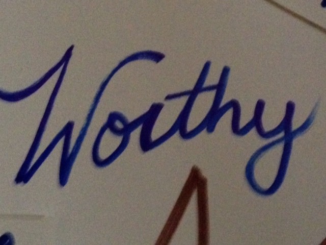 And today, as I was gluing my life together, I knew there was more than just Jeremy missing. That it was really about my feeling worthy. So I grabbed a permanent marker and wrote the words “Worthy” and “Love” directly on the circle.